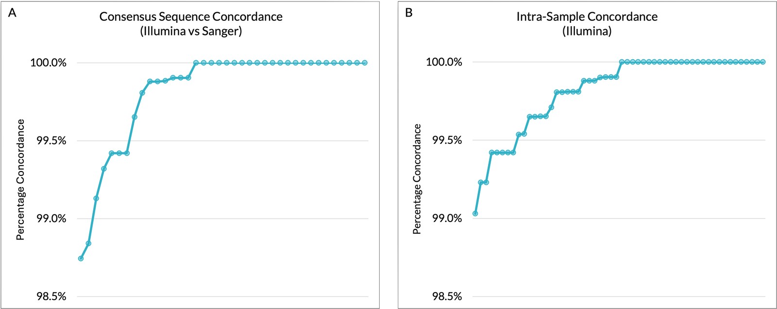 - Specificity: >98.7% concordance between Illumina and Sanger consensus sequences.